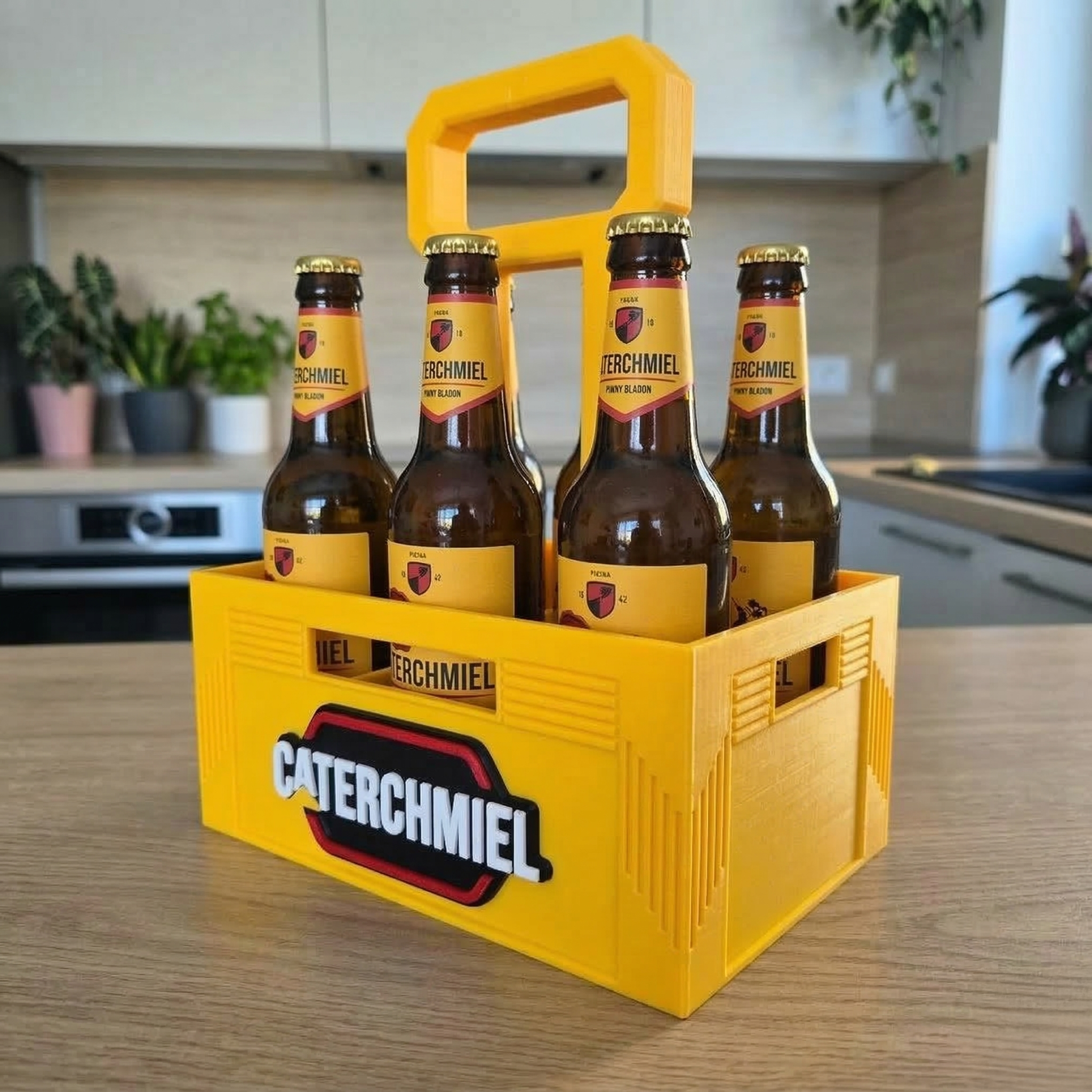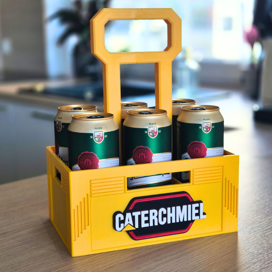 Nosidło na piwo „CATERCHMIEL” to propozycja dla tych, którzy lubią mocne brzmienie… zarówno silników, jak i kapsli otwieranych po pracy. Projekt inspirowany stylistyką znanej marki sprzętu budowlanego w humorystycznej odsłonie przyciąga wzrok i wywołuje uśmiech już od pierwszego spojrzenia.