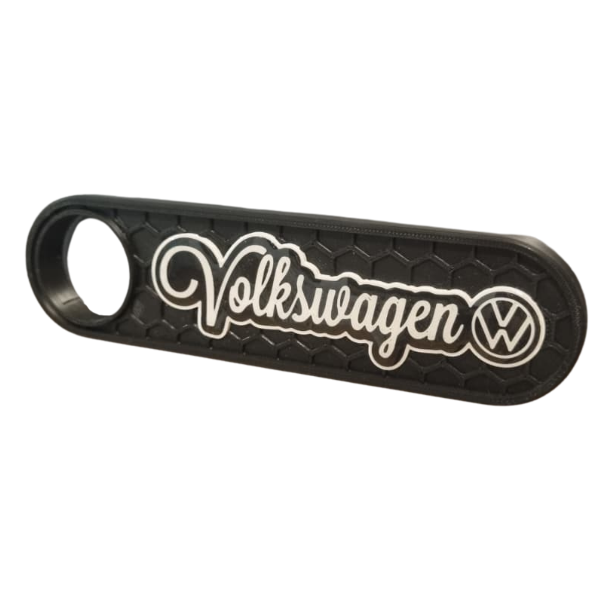 Ten otwieracz do butelek to obowiązkowy gadżet dla każdego fana motoryzacji! Inspirowany legendarną marką Volkswagen, łączy w sobie styl i funkcjonalność. Został wykonany metodą druku 3D, co gwarantuje wysoką precyzję detali i solidność wykonania. Charakterystyczny napis oraz logo przyciągają wzrok, a czarna baza z delikatną fakturą plastra miodu nadaje całości wyjątkowego charakteru.