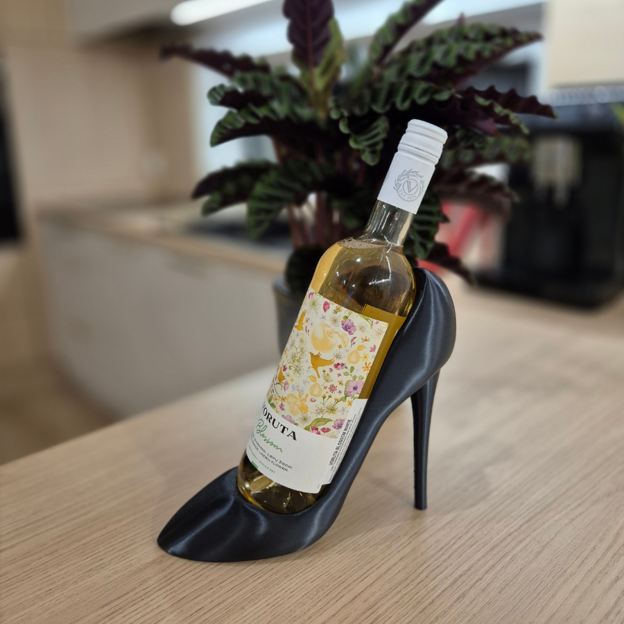 Stojak na wino w formie eleganckiej czarnej szpilki to połączenie nowoczesnego designu, humoru i funkcjonalności. To nie tylko praktyczny uchwyt na butelkę, ale przede wszystkim oryginalna dekoracja, która wyróżni Twoją kuchnię, salon lub jadalnię.