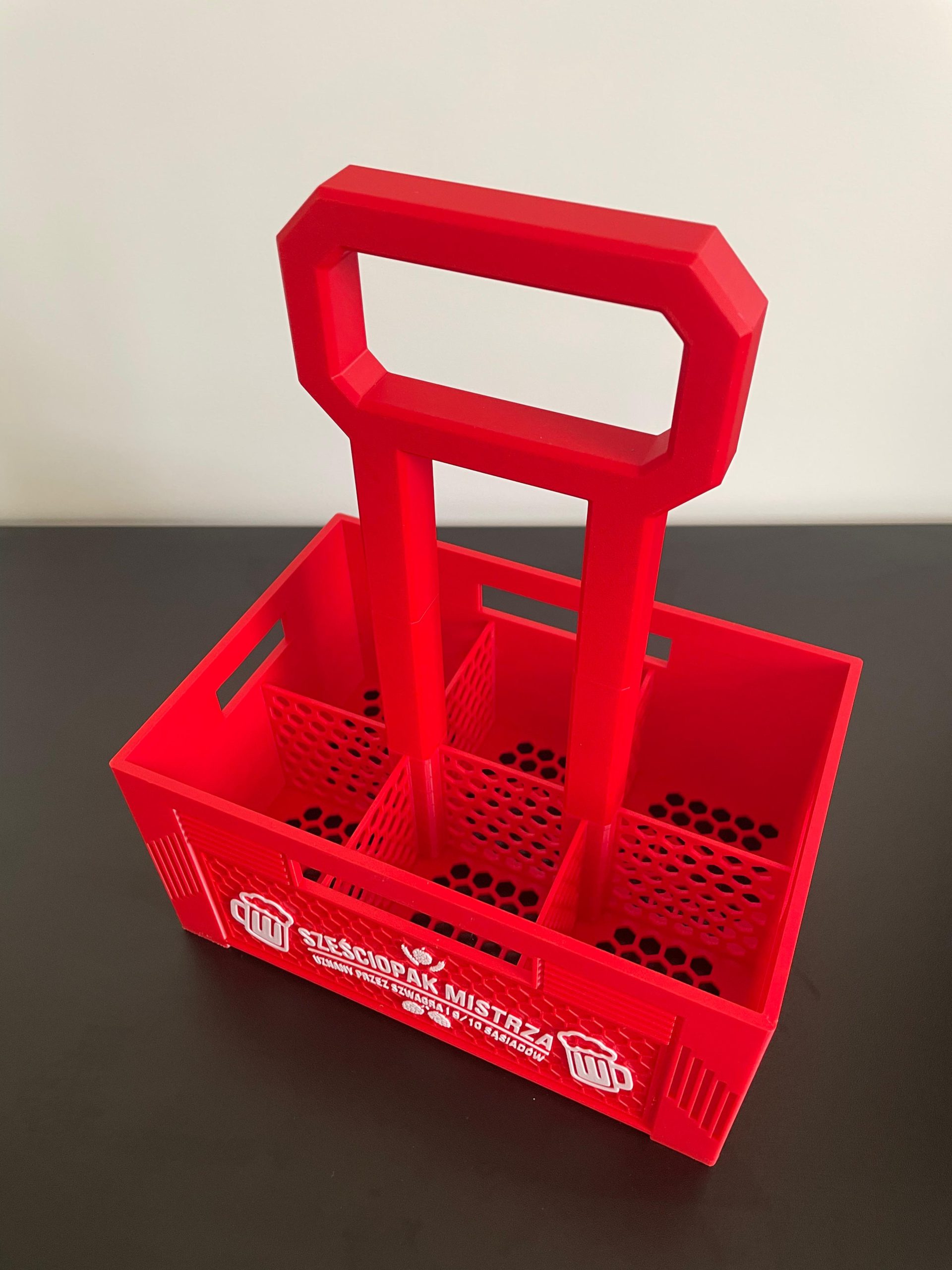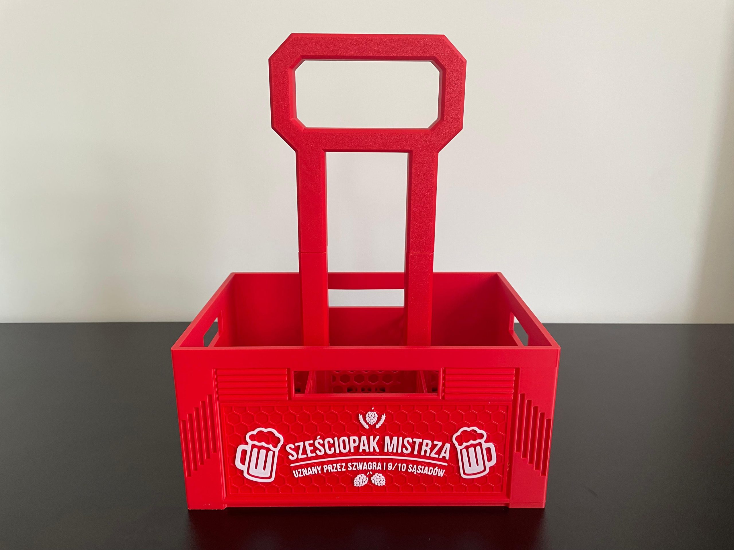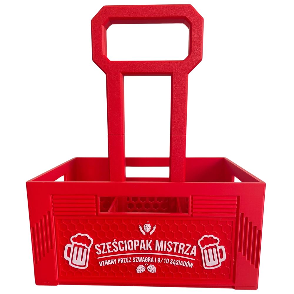 Nosidło zostało wykonane z wytrzymałego plastiku w technologii druku 3D, co gwarantuje solidność konstrukcji, a jednocześnie ciekawy, nowoczesny wygląd. Charakterystyczny nadruk z napisem „Sześciopak Mistrza – uznany przez szwagra i 9/10 sąsiadów” przyciąga uwagę i wywołuje uśmiech – sprawdzi się idealnie jako prezent na urodziny, wieczór kawalerski, Dzień Ojca czy po prostu jako praktyczny dodatek do weekendowego grilla.